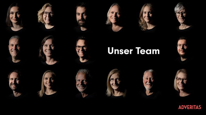 Und auch die neuen Porträts der Mitarbeitenden im «Rembrandt-Licht-Stil» können genutzt werden. Einerseits, um die Mitarbeiter vorzustellen, aber andrerseits natürlich auch, um die Kompetenzen des Unternehmens auf indirekte Art hervorzuheben – als Dienstleistungsunternehmen sind bei Adveritas die Mitarbeitenden das Herzstück des Unternehmens.